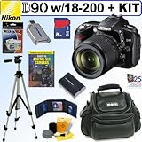 Nikon D90's Fusing 12.3-megapixel image quality inherited from the award-winning D300 with groundbreaking features, the D90's breathtaking, low-noise image quality is further advanced with EXPEED image processing. Split-second shutter response and continuous shooting at up to 4.5 frames-per-second provide the power to capture fast action and precise moments perfectly, while Nikon's exclusive Scene Recognition System contributes to faster 11-area autofocus performance, finer white balance detection and more. The D90 delivers the control passionate photographers demand, utilizing comprehensive exposure functions and the intelligence of 3D Color Matrix Metering II. Stunning results come to life on a 3-inch 920,000-dot color LCD monitor, providing accurate image review, Live View composition and brilliant playback of the D90's cinematic-quality 24-fps HD D-Movie mode.The Sigma 18-200mm f/3.5-6.3 DC OS Lens offers an "all-in-one" super-zoom lens solution, from wide-angle to long telephoto. Equivalent focal range is approx. 27-300mm when used with a Nikon digital SLR camera. Updated with the OS (Optical Stabilizer) system, which minimizes image blur caused by camera shake, and offers the equivalent of shooting at a shutter speed 2-3 stops faster. This allows handheld telephoto zoom shooting even in poorly lit conditions. The 18-200mm's optical design incorporates aspherical lenses and SLD (Special Low Dispersion) glass, which provides the utmost correction for all types of aberrations. DC lenses are exclusively designed for digital SLR cameras. The image circle (rear of lens) is sized to match the smaller dimensions used for the image sensor on digital cameras. 8GB Deluxe Accessory Kit: Loaded with extremely useful accessories!